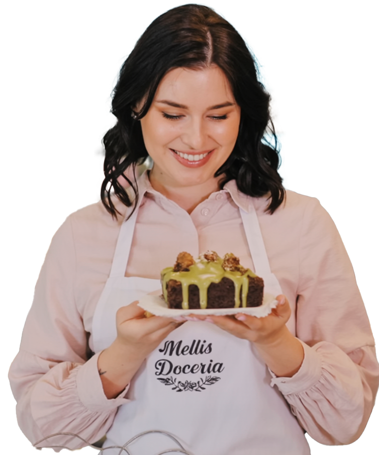 Foi assim que nasceu a Mellis Academy — um espaço criado para compartilhar todo o conhecimento, técnicas e segredos que levaram sua doceria ao topo.