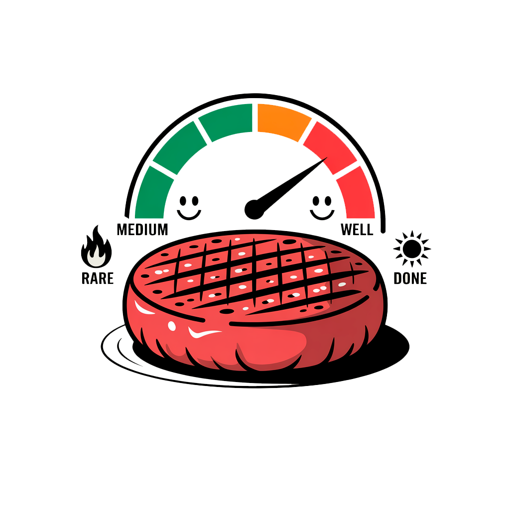 Escolha o ponto ideal (mal passada, ao ponto, bem passada) para cada corte e o timer ajusta automaticamente o tempo.